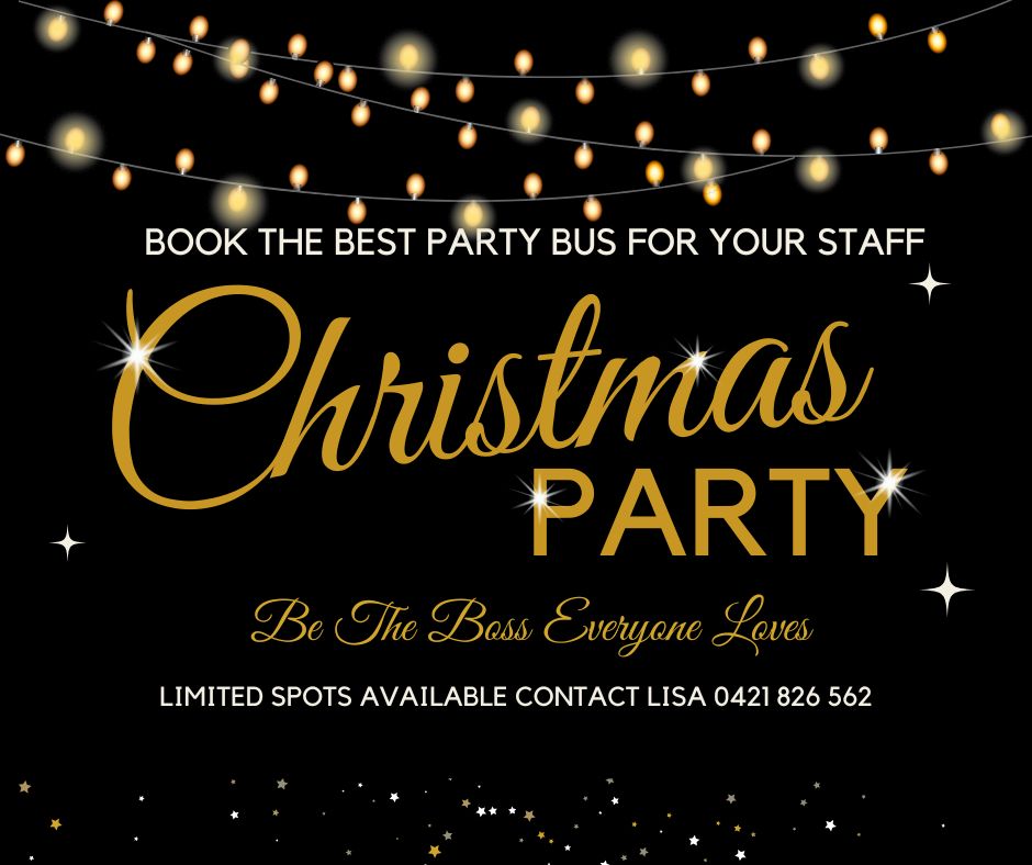 CHRISTMAS & WORK & STAFF PARTIESWe don’t just get you there — we create the whole experience! Let SWAT PARTY BUS take your work crew from boring to legendary. Check out our all-inclusive packages for unforgettable staff parties!